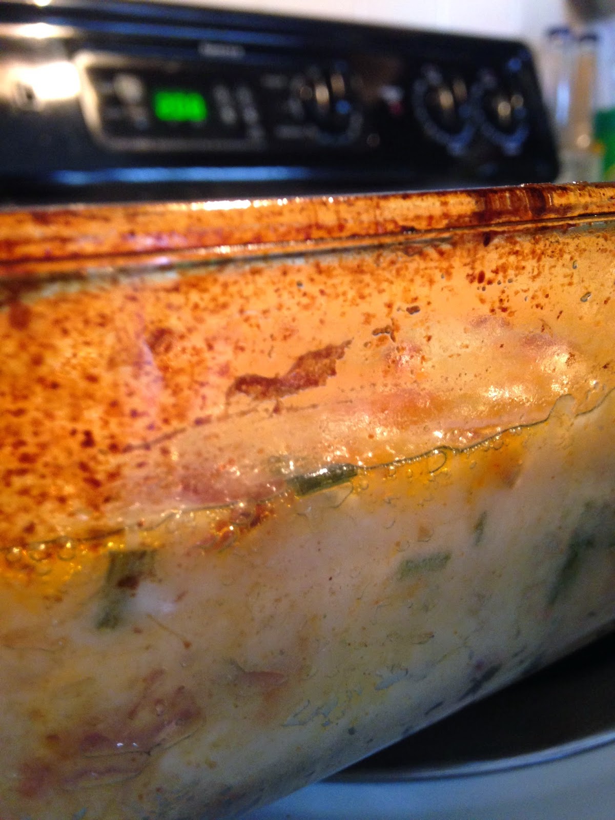 Here is our final look. OMG. The cheesy top, the yummy potato and bacon and goodness inside! It literally took everything I had to not put a spoon in and taste it right then and there, but I had to wait until Easter Dinner!!